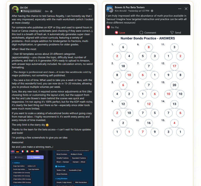 Sansuu Royalty solves this by automating 97% of the process; it generates math worksheets across dozens of categories, auto‑builds solution pages, formats everything to fit multiple trim sizes and even designs your covers.